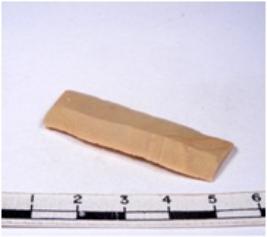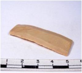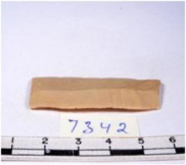 | Description / विवरण | A fragment of a rectangular shaped chert blade showing dorsal sides with sharp edges having smooth surface and triangular section. |
