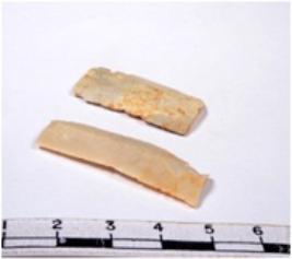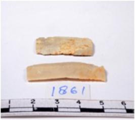 | Description / विवरण | A fragment of a rectangular shaped chert blade showing dorsal sides with sharp edges having smooth surface and triangular section. |