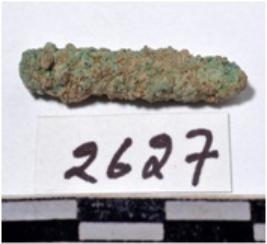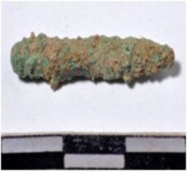 | Description / विवरण | A fragment of a copper nail, broken head, circular in section, pointed one end of rough surface. |