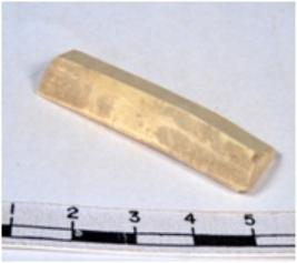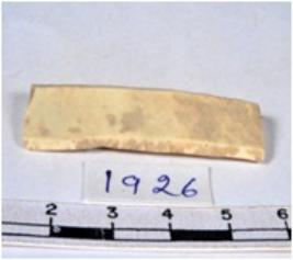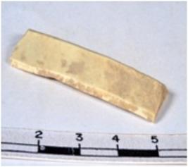 | Description / विवरण | A fragment of a rectangular shaped chert blade showing dorsal sides with sharp edges having smooth surface and triangular section. |