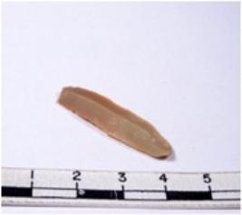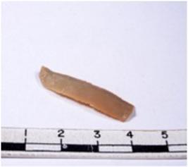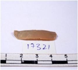 | Description / विवरण | A fragment of a rectangular shaped chert blade showing dorsal sides with sharp edges having smooth surface and triangular section. |