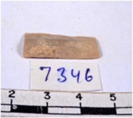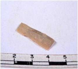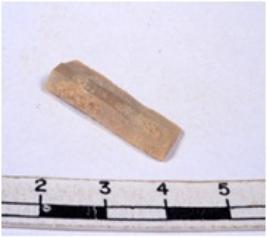 | Description / विवरण | A fragment of a rectangular shaped chert blade showing dorsal sides with sharp cutting edges having smooth surface and triangular section. |