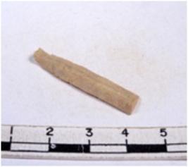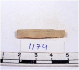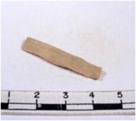 | Description / विवरण | A fragment of a rectangular shaped chert blade showing dorsal sides with sharp cutting edges having smooth surface and triangular section. |