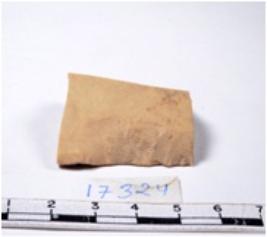 | Description / विवरण | A fragment of a rectangular shaped chert blade showing dorsal sides with sharp edges having smooth surface and triangular section. |