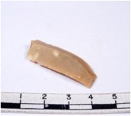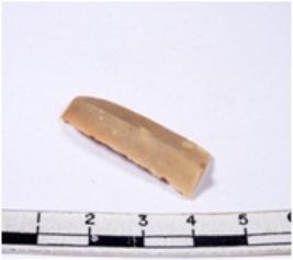 | Description / विवरण | A fragment of a rectangular shaped chert blade showing dorsal sides with sharp edges having smooth surface and triangular section. |
