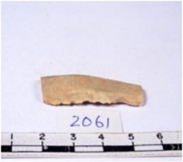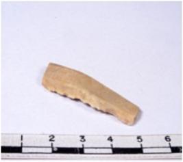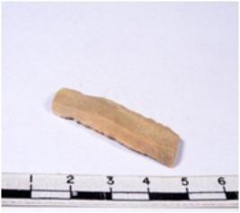 | Description / विवरण | A fragment of a rectangular shaped chert blade showing dorsal sides with sharp cutting edges having smooth surface and triangular section. |