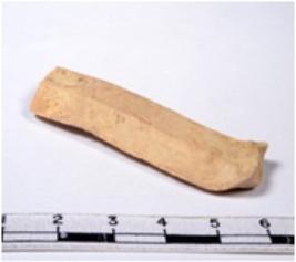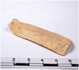 | Description / विवरण | A fragment of a rectangular shaped chert blade showing parallel sides with sharp edges having smooth surface and uneven section. |