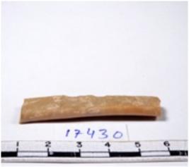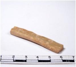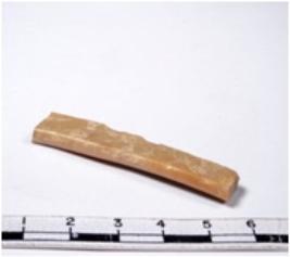 | Description / विवरण | A fragment of a rectangular shaped chert blade showing parallel sides with sharp cutting edges having smooth surface and uneven section. |