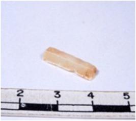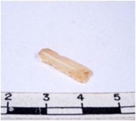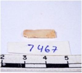 | Description / विवरण | A fragment of a rectangular shaped chert blade showing dorsal sides with sharp cutting edges having smooth surface and triangular section. |