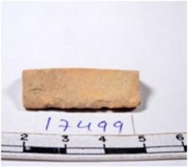 | Description / विवरण | A fragment of a rectangular shaped chert blade showing dorsal sides with sharp edges having smooth surface and triangular section. |
