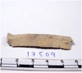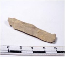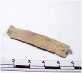 | Description / विवरण | A fragment of a rectangular shaped chert blade showing parallel sides with sharp edges having smooth surface and uneven section. |