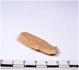 | Description / विवरण | A fragment of a rectangular shaped chert blade showing dorsal sides with sharp edges having smooth surface and triangular section. |