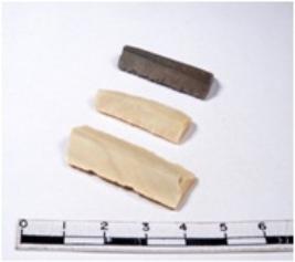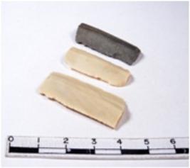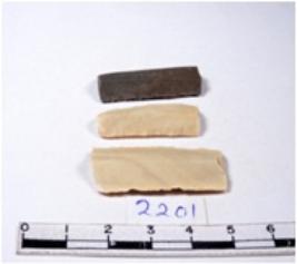| Description / विवरण | A fragment of a rectangular shaped chert blade showing dorsal sides with sharp cutting edges having smooth surface and triangular section. |