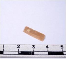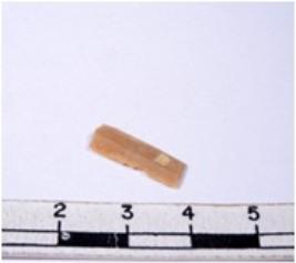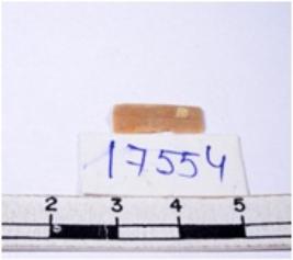 | Description / विवरण | A fragment of a rectangular shaped chert blade showing parallel sides with sharp edges having smooth surface and triangular section. |