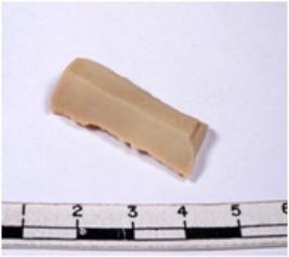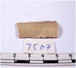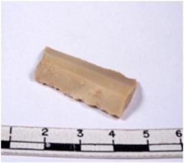| Description / विवरण | A fragment of a rectangular shaped chert blade showing dorsal sides with sharp edges having smooth surface and triangular section. |