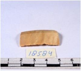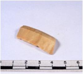| Description / विवरण | A fragment of a rectangular shaped chert blade showing dorsal sides with sharp edges having smooth surface and triangular section. |