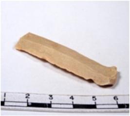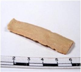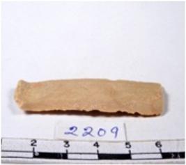 | Description / विवरण | A fragment of a rectangular shaped chert blade showing parallel sides with sharp edges having smooth surface and uneven section. |