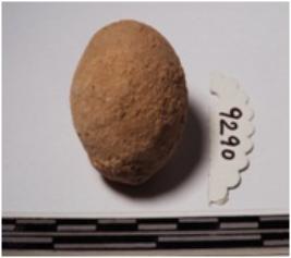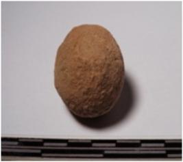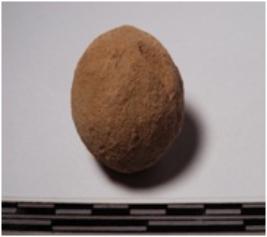 | Description / विवरण | A terracotta round in shaped sling ball of rough surface. |