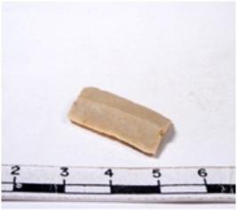 | Description / विवरण | A fragment of a rectangular shaped chert blade showing parallel sides with sharp cutting edges having smooth surface and uneven section. |
