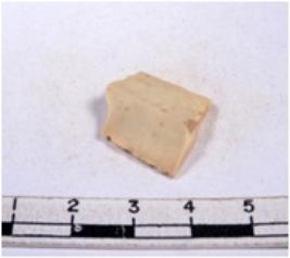 | Description / विवरण | A fragment of a rectangular shaped chert blade showing dorsal sides with sharp cutting edges having smooth surface and triangular section. |