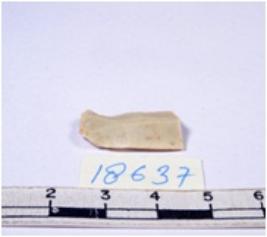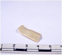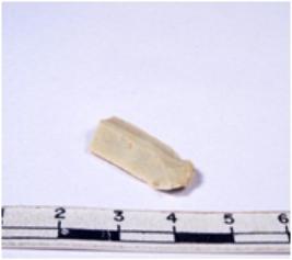 | Description / विवरण | A fragment of a rectangular shaped chert blade showing dorsal sides with sharp cutting edges having smooth surface and triangular section. |