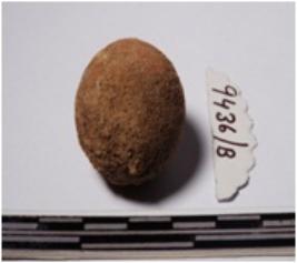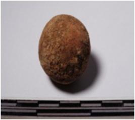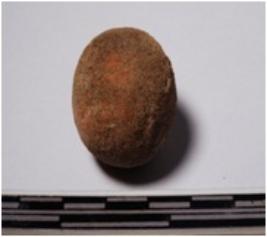 | Description / विवरण | A terracotta sling ball round in shape of smooth surface. |