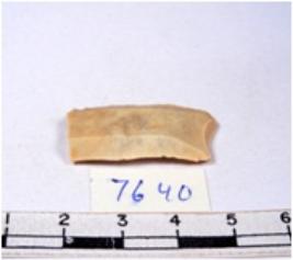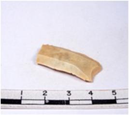 | Description / विवरण | A fragment of a rectangular shaped chert blade showing dorsal sides with sharp edges having smooth surface and triangular section. |