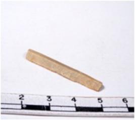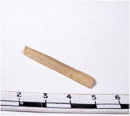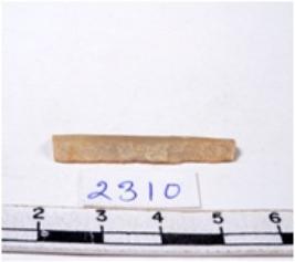 | Description / विवरण | A fragment of a rectangular shaped chert blade showing dorsal sides with sharp edges having smooth surface and triangular section. |