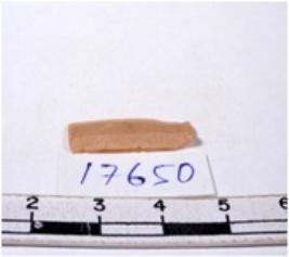 | Description / विवरण | A fragment of a rectangular shaped chert blade showing dorsal sides with sharp edges having smooth surface and triangular section. |