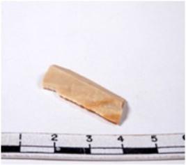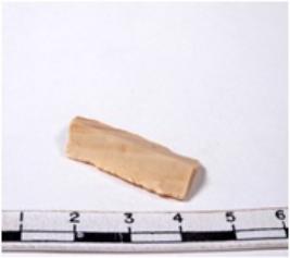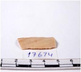 | Description / विवरण | A fragment of a rectangular shaped chert blade showing dorsal sides with sharp edges having smooth surface and triangular section. |