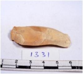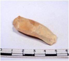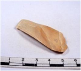 | Description / विवरण | A fragment of a rectangular shaped chert blade showing dorsal sides with sharp cutting edges having smooth surface and triangular section. |