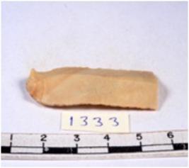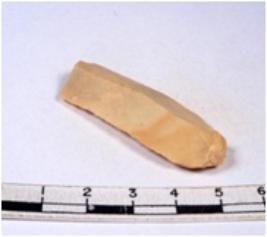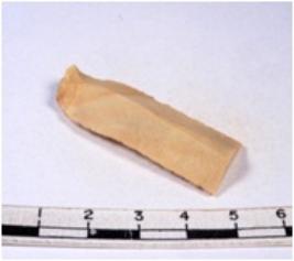 | Description / विवरण | A fragment of a rectangular shaped chert blade showing dorsal sides with sharp edges having smooth surface and triangular section. |