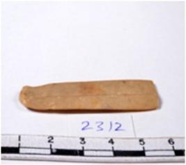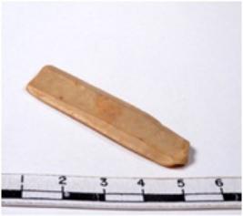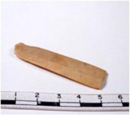 | Description / विवरण | A fragment of a rectangular shaped chert blade showing parallel sides with sharp edges having smooth surface and uneven section. |