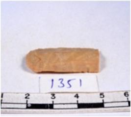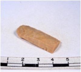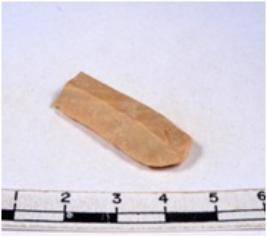 | Description / विवरण | A fragment of a rectangular shaped chert blade showing dorsal sides with sharp cutting edges having smooth surface and triangular section. |