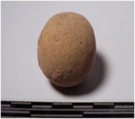 | Description / विवरण | A terracotta round in shaped sling ball of smooth surface. |