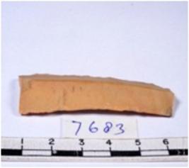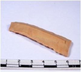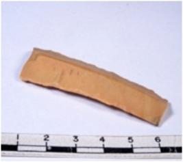 | Description / विवरण | A fragment of a rectangular shaped chert blade showing dorsal sides with sharp cutting edges having smooth surface and triangular section. |