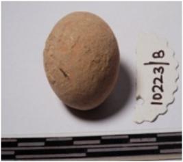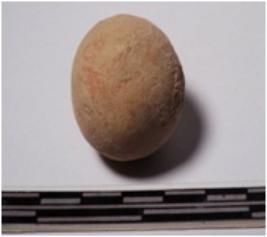 | Description / विवरण | A terracotta round in shaped sling ball of smooth surface. |