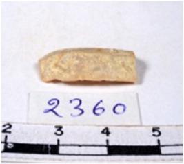 | Description / विवरण | A fragment of a rectangular shaped chert blade showing dorsal with sharp edges having smooth surface and uneven section. |