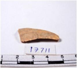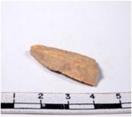 | Description / विवरण | A fragment of a triangle shaped chert blade showing dorsal sides with sharp cutting edges having smooth surface and triangular section. |