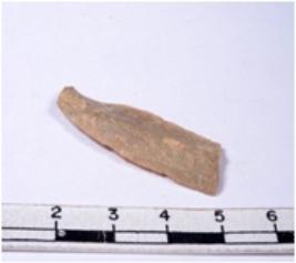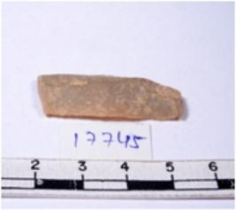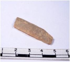 | Description / विवरण | A fragment of a rectangular shaped chert blade showing dorsal sides with sharp cutting edges having smooth surface and triangular section. |