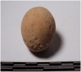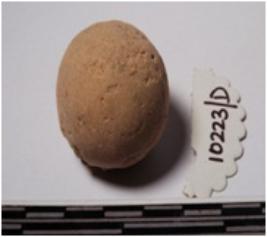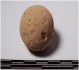 | Description / विवरण | A terracotta round in shaped sling ball of smooth surface. |