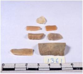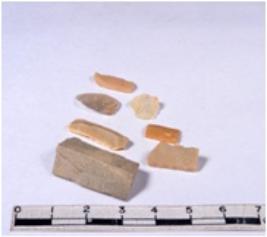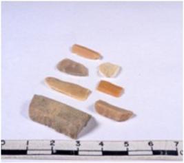 | Description / विवरण | A fragment of a rectangular shaped chert blade showing dorsal sides with sharp edges having smooth surface and triangular section. |