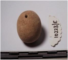 | Description / विवरण | A terracotta round shaped sling ball of smooth surface. |