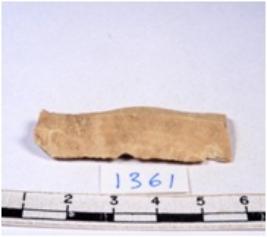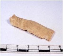 | Description / विवरण | A fragment of a rectangular shaped chert blade showing dorsal sides with sharp cutting edges having smooth surface and triangular section. |