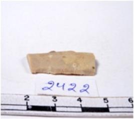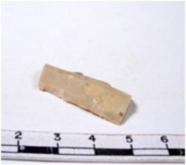 | Description / विवरण | A fragment of a rectangular shaped chert blade showing dorsal sides with sharp edges having smooth surface and triangular section. |