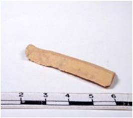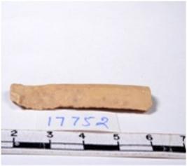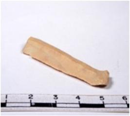 | Description / विवरण | A fragment of a rectangular shaped chert blade showing dorsal sides with sharp edges having smooth surface and triangular section. |