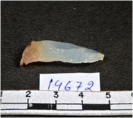 | Description / विवरण | A fragment of a rectangular shaped chalcedony blade showing dorsal sides with sharp edges having smooth surface and triangular section. |