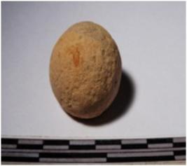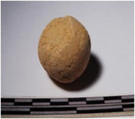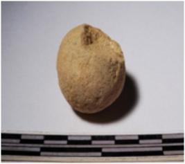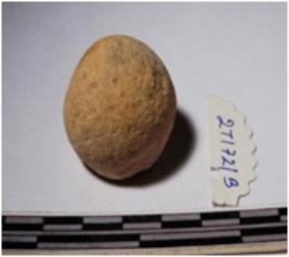 | Description / विवरण | A fragment of a terracotta sling ball globular in shape of smooth surface. |