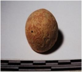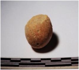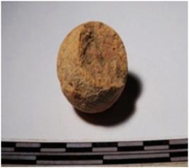 | Description / विवरण | A fragment of a terracotta sling ball round in shape of smooth surface. |