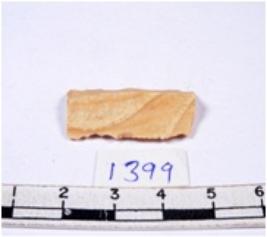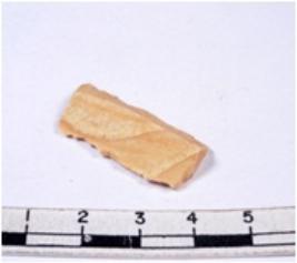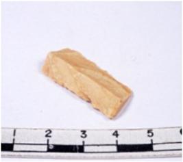 | Description / विवरण | A fragment of a rectangular shaped chert blade showing dorsal sides with sharp edges having smooth surface and triangular section. |